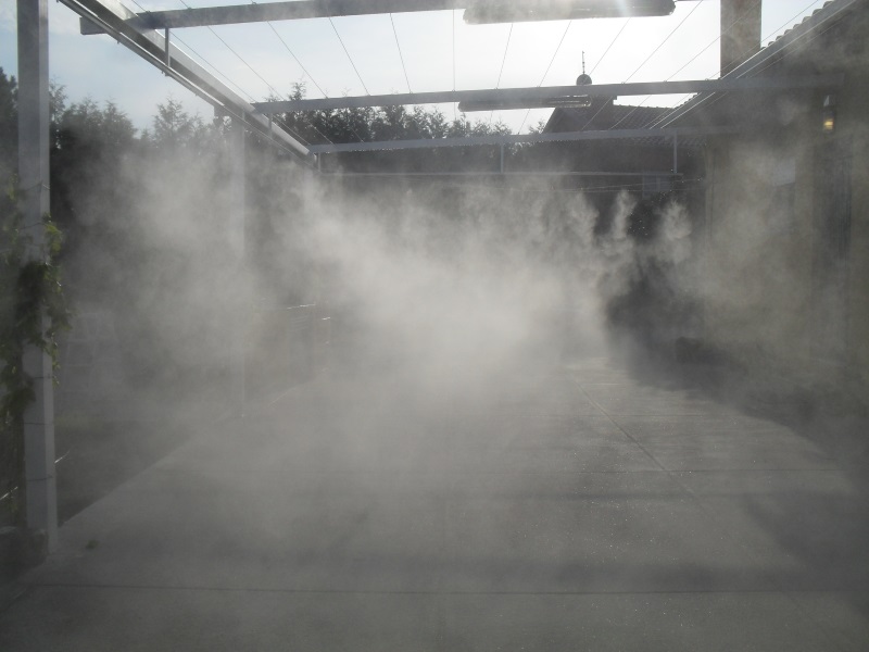 É o sistema de climatização de água de resfriamento simpes que faz cair a temperatura.